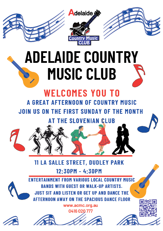 The Adelaide Country Music Club meets monthly, providing country fans with the opportunity to see and hear the best of local and interstate artists.